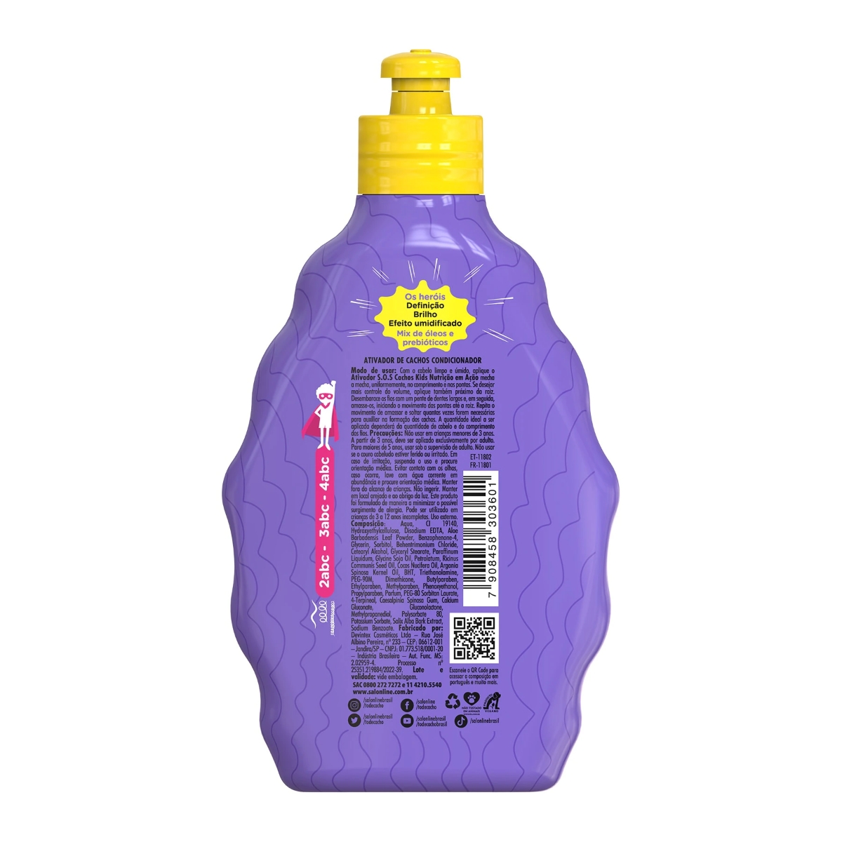 O Ativador de Cachos Infantil S.O.S Cachos Kids Nutrição em Ação foi feito para facilitar a rotina dos pais no cuidado dos cabelos das crianças, já que são produtos hipoalergênicos e dermatologicamente testados. Ele garante controle de volume, brilho umidificado, além de controlar o frizz e deixar os cachos definidos e com brilho intenso.