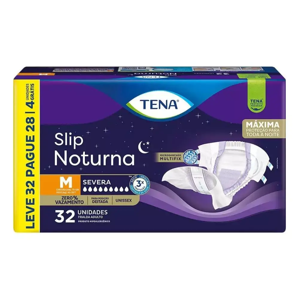 Este é um pacote de Fraldas Geriátricas/Adulto TENA Slip Noturna, projetado para oferecer a máxima proteção durante toda a noite.